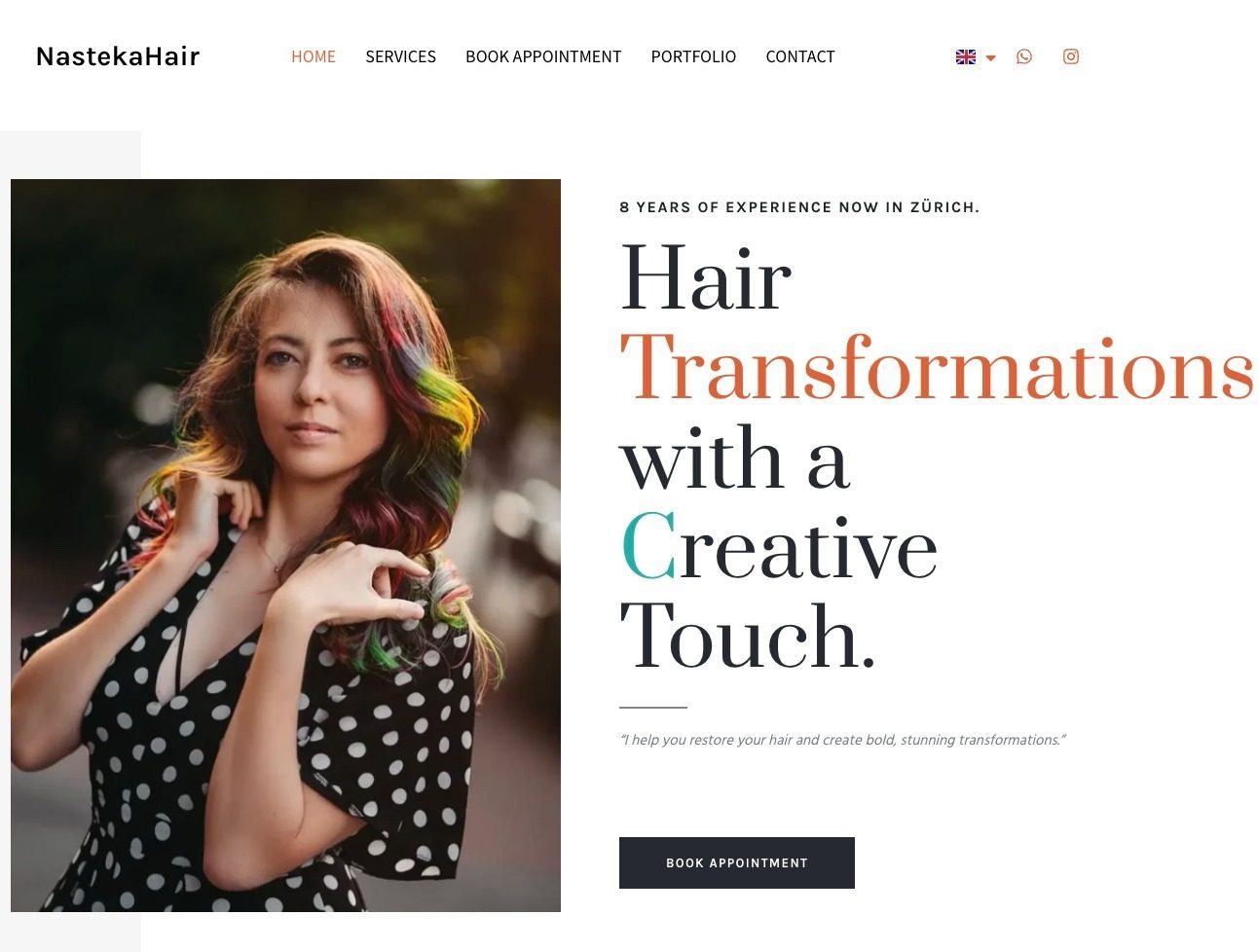 I designed and developed a professional website for a hair styling business, handling UI/UX, branding, and SEO. The site features an online booking system, enabling clients to schedule appointments easily, with mobile calendar integration. With a modern design, intuitive navigation, and optimized performance, the website enhances user experience and streamlines business operations. This project highlights my expertise in creating functional, engaging, and high-performing websites tailored to client needs.